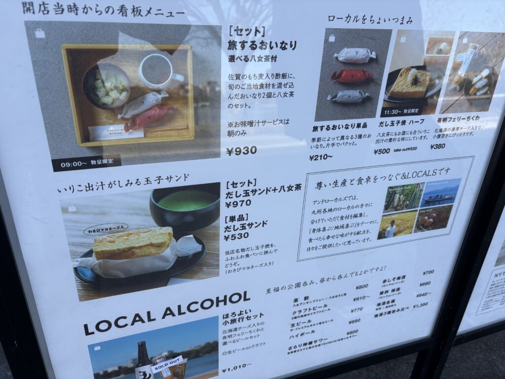 朝の時間は、9:00〜数量限定の「旅するおいなり(朝のみ、お味噌汁サービス付き)」や、