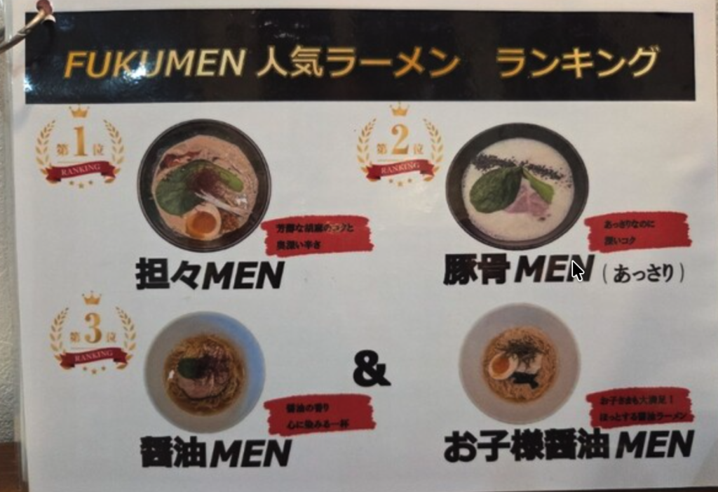 | 店名 | ラーメン製作所 FUKUMEN |