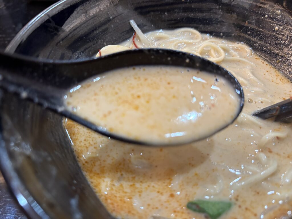 辛さは「普通」を選んだので、ピリッとした心地よい刺激がクリーミーなスープとベストマッチ。口の中が幸せ大渋滞です。