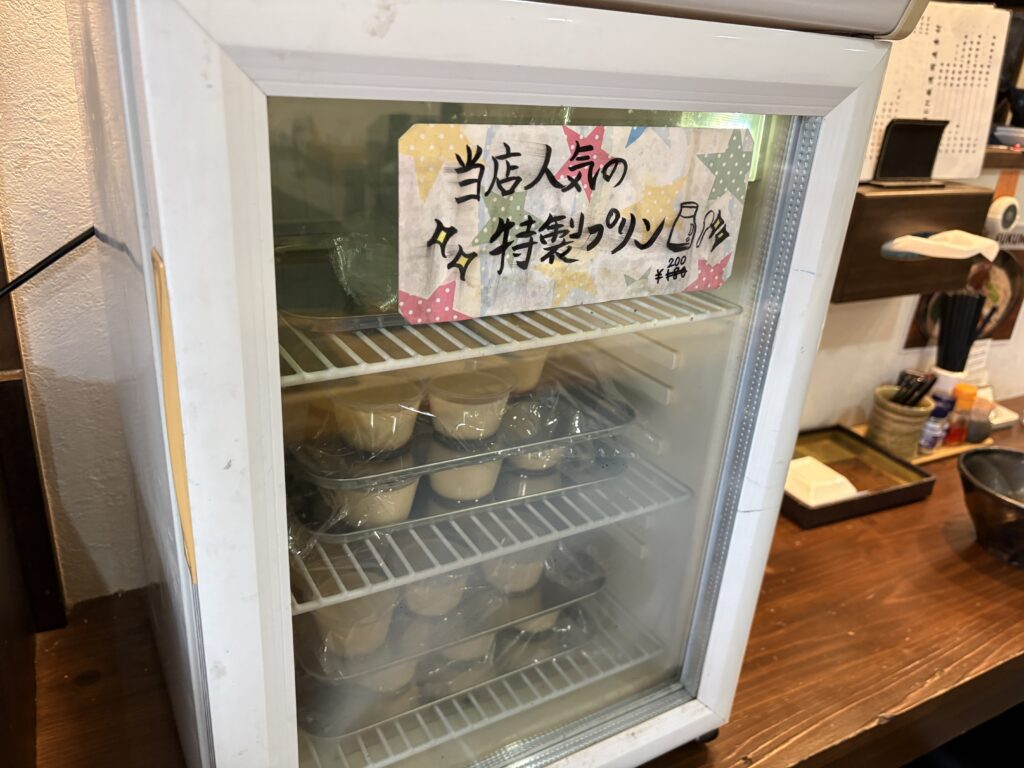そして!入り口の冷蔵庫で猛烈にアピールしてくるのが、店主の友人のパティシエさんが作っているという「特製プリン(200円)」。今回は、お腹いっぱいになっちゃったので見送りましたが……YouTuber「豆苗プリン」として、次回は絶対に食べたいと思います!(笑)