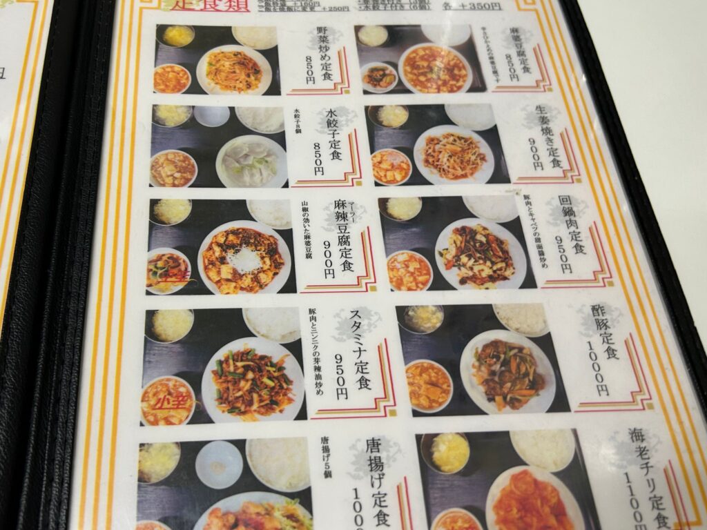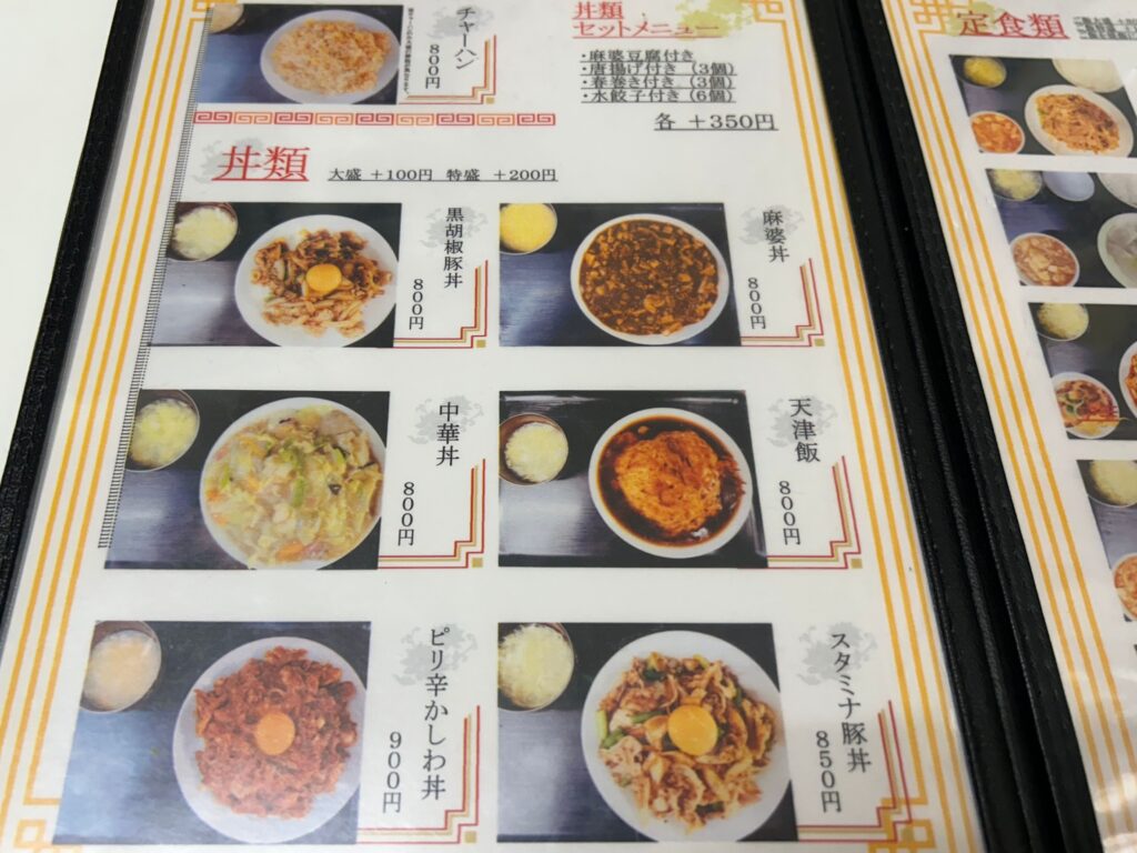 知味観には定食、麺類、丼類、ヤング類と豊富なメニューがあります。