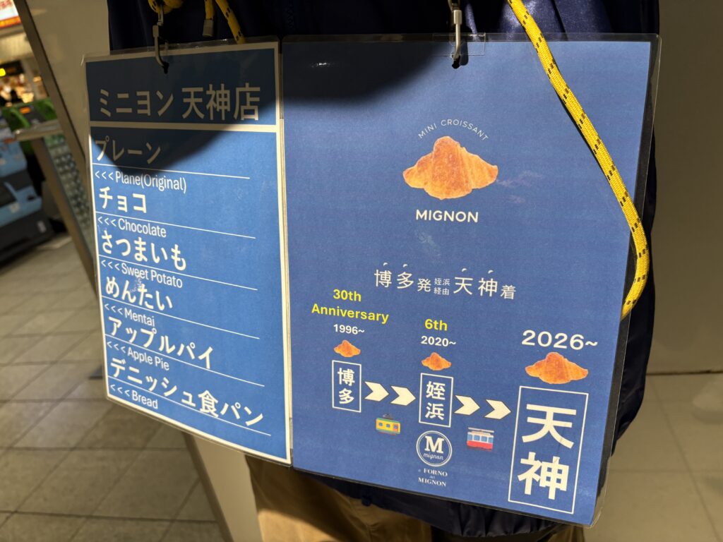 そう、博多駅名物・行列のできるクロワッサン専門店「MIGNON(ミニヨン)」が、なんと2026年1月10日、天神に新店舗をオープンしました!