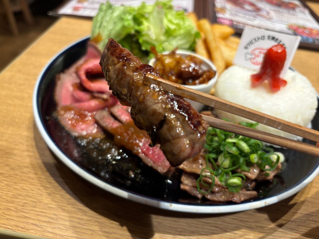 席に着いてメニューを覗くと、そこには肉好きにはたまらないラインナップがずらり! ビストロというだけあって、鉄板焼肉だけでなくローストビーフやステーキなど、バリエーションが豊富です。