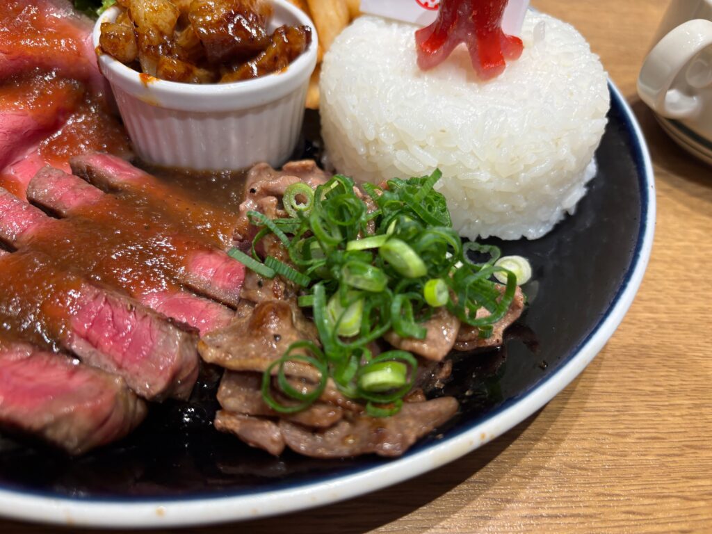 見てください、このビジュアル!「お子様ランチ」という名前ですが、内容は完全に「肉好き大人のための夢のプレート」。