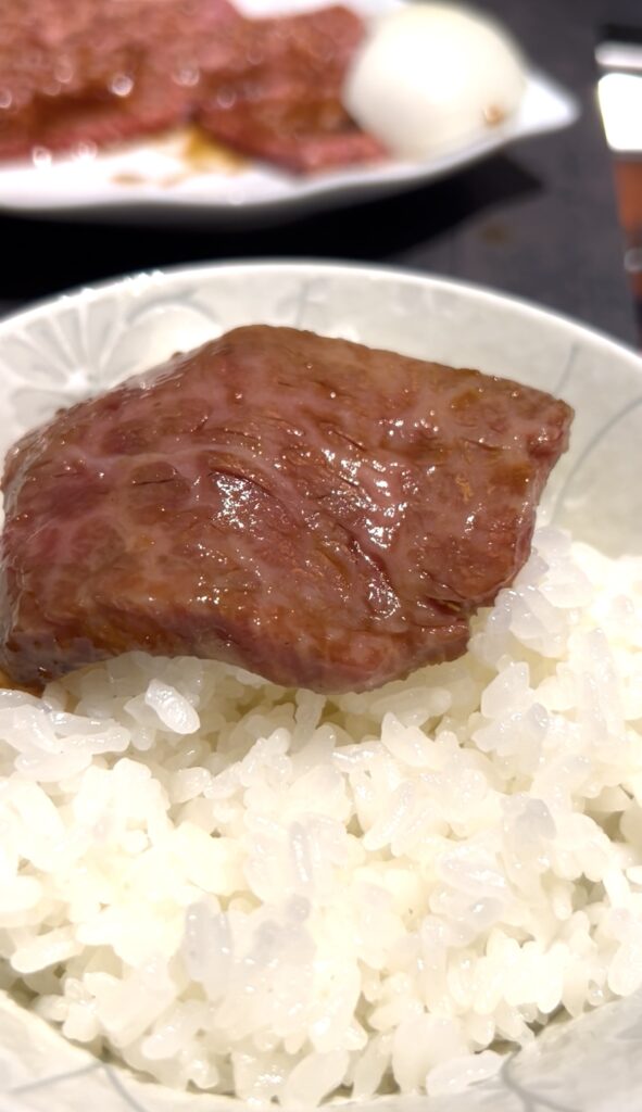 脂っこくないから、肉の旨味がダイレクトに来るんです。タレにつけて、白ご飯にバウンドさせて口に運ぶともう最高。